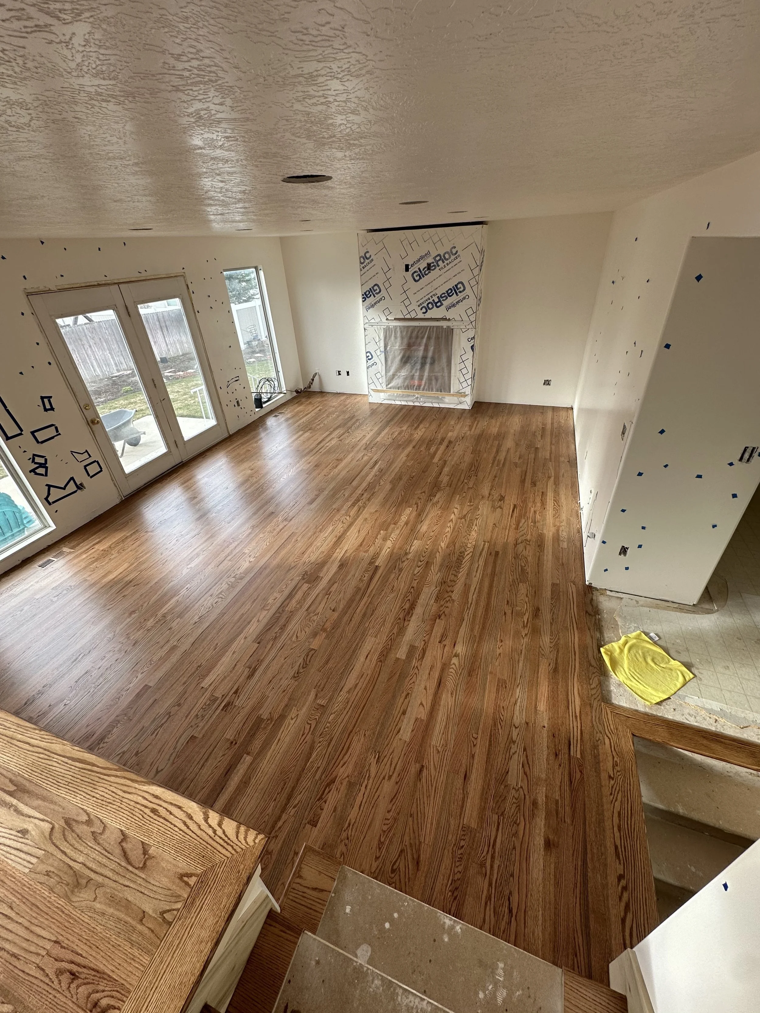 Red Oak hardwood floors with a Nutmeg stain bring warmth, sophistication, and timeless style to your home. Perfect for high-traffic areas, these floors combine natural beauty with long-lasting performance.